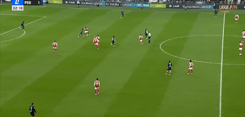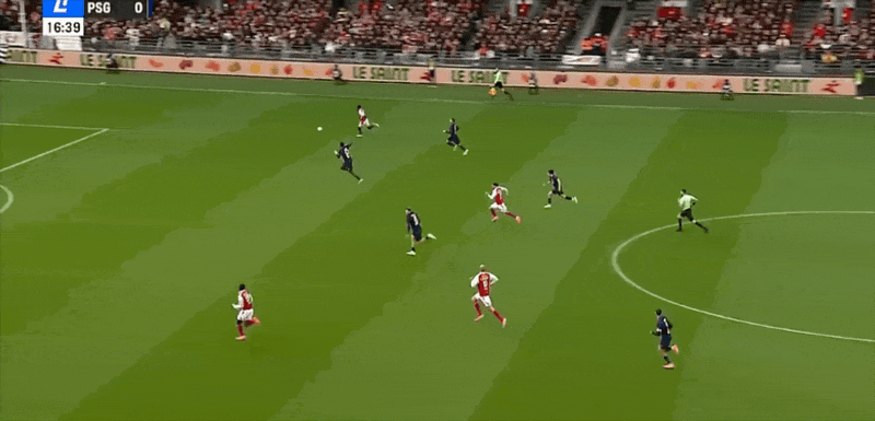巴黎圣日耳曼首发阵容:30-舍瓦利耶、21-卢卡斯、2-阿什拉夫、51-帕乔(67’5-马尔基尼奥斯)、6-扎巴尔尼、19-李刚仁(67’10-登贝莱)、17-维蒂尼亚、33-埃梅里、7-克瓦拉茨赫利亚(70’14-杜埃)、29-巴尔科拉(79’9-拉莫斯)、24-马尤鲁(79’47-恩詹图)