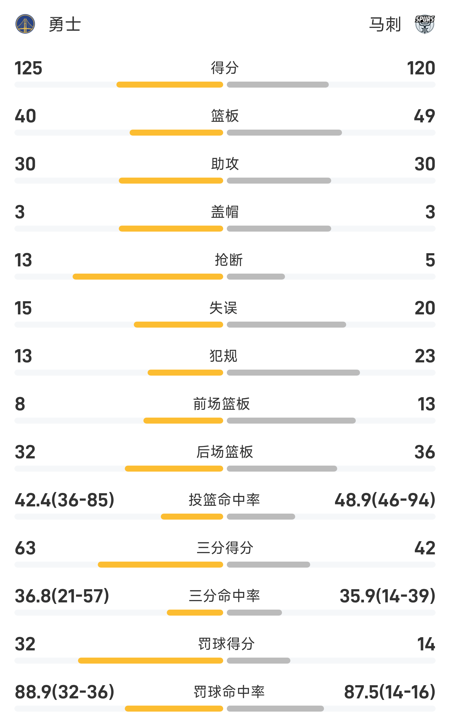 NBA战报:库里46分,文班空砍三双,勇士125-120马刺