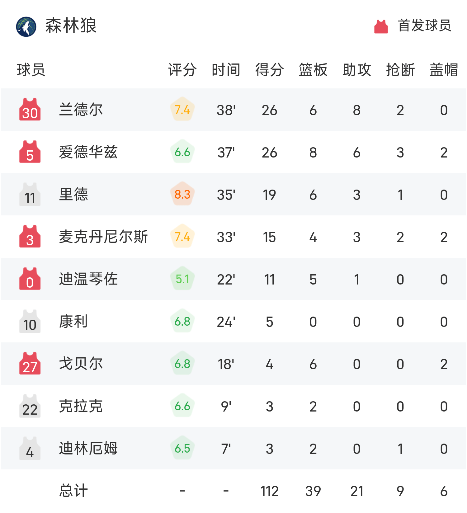 球员数据 查看更多