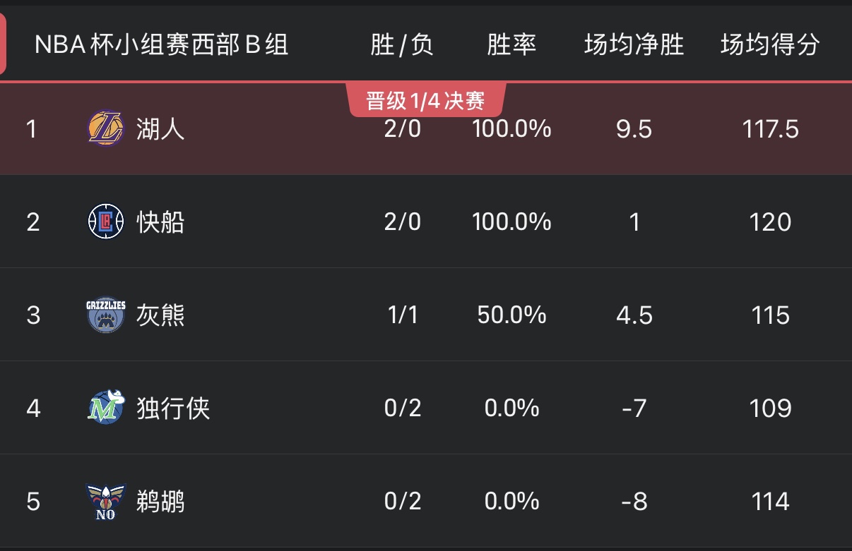 6686体育11月15日讯 今日的NBA杯分组赛已经全部终结,而6个小组的排名也发生了变化。
