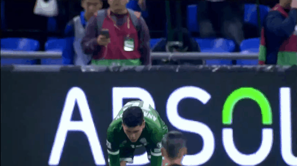 17’奥纳纳三秒区外起脚外围射门,皮球直接飞上看台