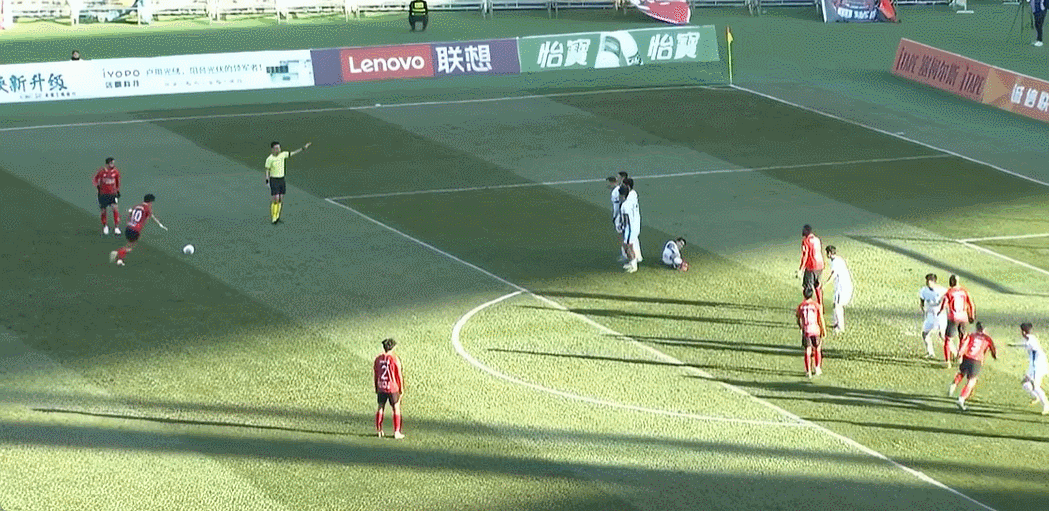 85’陈彬彬横传,贾博琰迎球打门命中,但裁判员吹陈彬彬越位在先
