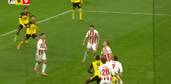 10’多特前场边线球造混乱,安东近距离推远角被挡出端线